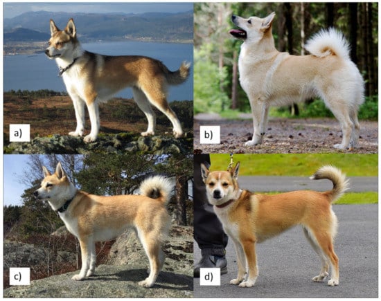 Based on behavioral and morphological traits, shared history and genetic distance, three candidate breeds for outcrossing were selected by the NKK: the Norwegian Buhund (hereafter Buhund) (Figure 1b), the Norrbottenspets (from Sweden) and the Icelandic sheepdog [23].