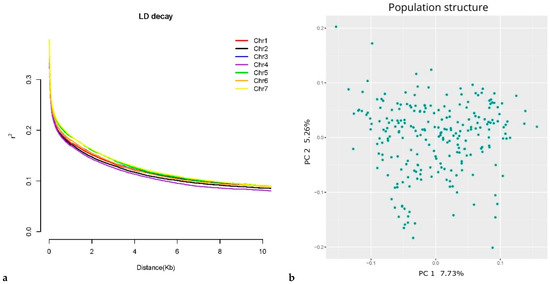 31. Zhang, C.; Dong, S.-S.; Xu, J.-Y.; He, W.-M.; Yang, T.-L. PopLDdecay: A fast and effective tool for linkage disequilibrium decay analysis based on variant call format files. Bioinformatics 2019, 35, 1786–1788. [Google Scholar] [CrossRef] [PubMed]