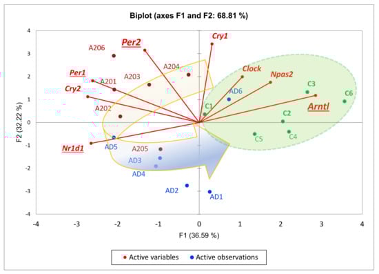 | Variables | Nr1d1 | Cry2 | Per1 | Npas2 | Arntl | Cry1 | Clock | Per2 |