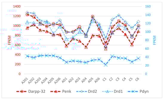 | Variables | Darpp-32 | Penk | Drd2 | Drd1 | Pdyn |
