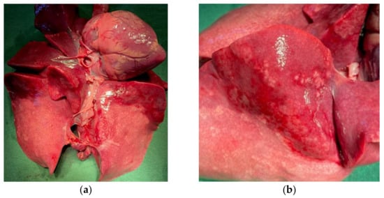 An autopsy was performed on the four deceased T/T lambs. A broad hepatization of lungs probably linked to an infectious pneumonia was particularly observed (Figure 4).