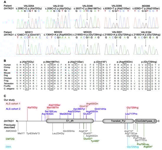 Osmanovic, A.; Gogol, I.; Martens, H.; Widjaja, M.; Müller, K.; Schreiber-Katz, O.; Feuerhake, F.; Langhans, C.-D.; Schmidt, G.; Andersen, P.M.; et al. Heterozygous DHTKD1 Variants in Two European Cohorts of Amyotrophic Lateral Sclerosis Patients. Genes 2022, 13, 84. https://doi.org/10.3390/genes13010084