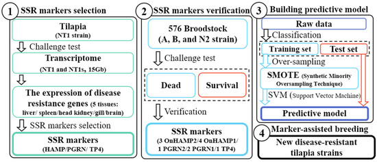 Chen, C.-C.; Huang, C.-W.; Lin, C.-Y.; Ho, C.-H.; Pham, H.N.; Hsu, T.-H.; Lin, T.-T.; Chen, R.-H.; Yang, S.-D.; Chang, C.-I.; et al. Development of Disease-Resistance-Associated Microsatellite DNA Markers for Selective Breeding of Tilapia (Oreochromis spp.) Farmed in Taiwan. Genes 2022, 13, 99. https://doi.org/10.3390/genes13010099