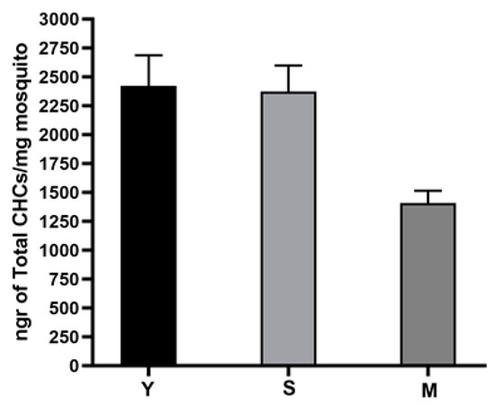 3.4. Analysis of Amount of Cuticular Hydrocarbon (CHC) in Mosquito