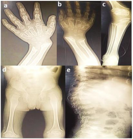 - Hendriksz, C.J.; Harmatz, P.; Beck, M.; Jones, S.; Wood, T.; Lachman, R.; Gravance, C.G.; Orii, T.; Tomatsu, S. Review of clinical presentation and diagnosis of mucopolysaccharidosis IVA. Mol. Genet. Metab. 2013, 110, 54–64. [Google Scholar] [CrossRef]