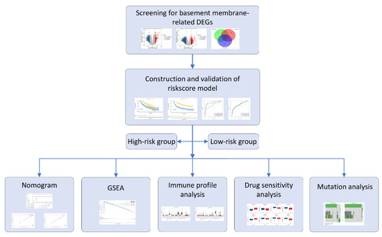 The GSE4290 [21] and GSE68848 [22] datasets were retrieved from the GEO (http://www.ncbi.nlm.nih.gov/geo/, accessed on 22 June 2022) database. The gene expression, tumor mutation burden (TMB), and clinical information of patients with low-grade glioma (LGGs) were obtained from TCGA database (https://portal.gdc.cancer.gov/, accessed on 6 June 2022). The mRNAseq_325 [23,24,25] and mRNAseq_693 [23,26,27] datasets, which included the gene expression and clinical data of two groups of glioma patients, were retrieved from the CGGA (http://www.cgga.org.cn/, accessed on 7 June 2022). The WHO grade II/III cohorts from the TCGA and CGGA were selected for the follow-up analysis, and cases with unknown OS and OS < 30 days were not included. BM-related genes were obtained from previously published articles [5]. The analytical procedure is outlined in Figure 1.