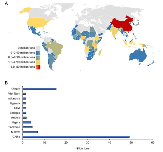 According to the statistics from the Food and Agriculture Organization (FAO) of the United Nations, the world’s total production of sweet potatoes in 2020 was 105 million tons. Sweet potato is largely produced in Asia, followed by the African continent (