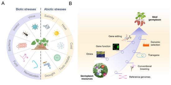 Figure 2). The acceleration is highly reliant on the discoveries in gene functional studies. The release of the sweet potato reference genome has significantly facilitated the advance in sweet potato functional genomics. The ability to breed major crops has been greatly improved by advances in genomics, and sweet potato can benefit from the knowledge gained from the breeding of major crops, including the identification of genes that control key agronomic traits and the application of advanced breeding methods, etc. Genetic and genomic resources for sweet potato breeding are still lacking, which hamper further utilization of modern crop improvement tools such as genomic selection, genome editing, and high-throughput phenotyping. Genome sequencing has progressed, becoming more affordable and applicable to orphan crops. Limited understanding of molecular mechanisms behind certain bio-functions is available and remains to be better explored. The use of molecular breeding has great potential to increase nutritional and functional constituents in economically important sweet potato, thus allowing development in nutritionally improved varieties. This issue contains five papers about omics research to describe and discuss the mechanisms underlying the regulation of storage root development [