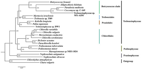 29. Lemieux, C.; Otis, C.; Turmel, M. Chloroplast phylogenomic analysis resolves deep-level relationships within the green algal class Trebouxiophyceae. BMC Evol. Biol. 2014, 14, 211. [Google Scholar] [CrossRef]