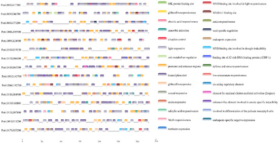 Cis-elements of PtriZATs interaction proteins during the 2000 bp upstream sequences. The color labels were on the right, the cis-elements message seen on Table S9.