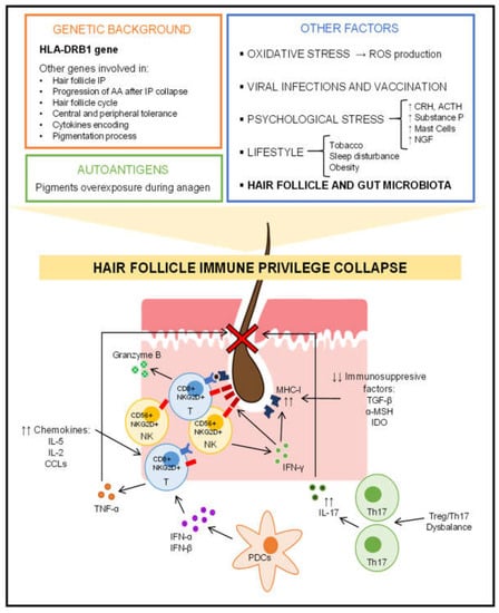 2.2. Hair Follicle Immune Privilege Collapse and Autoimmune Response
