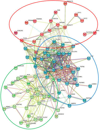 Sclerosteosis is a rare sclerosing bone disorder characterized by progressive generalized osteosclerosis. This condition has been linked to autosomal recessive loss-of-function mutations in the SOST gene, encoding the protein sclerostin, which inhibits osteoblastic activity and suppresses bone formation by antagonizing the Wnt/β-catenin signaling pathway [61,62]. It can also be caused by heterozygous or homozygous missense mutations in the LRP4 gene, which encodes a Wnt signaling coreceptor that facilitates the action of sclerostin on the Wnt/β-catenin pathway [63,64].