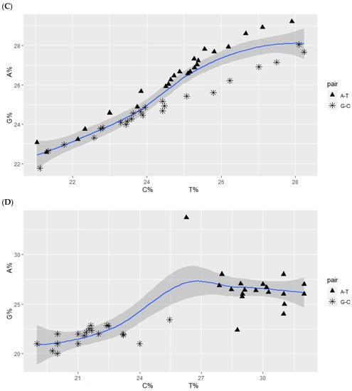 - Mascher, M.; Schubert, I.; Scholz, U.; Friedel, S. Patterns of nucleotide asymmetries in plant and animal genomes. BioSystems 2013, 111, 181–189. [Google Scholar] [CrossRef] [PubMed]