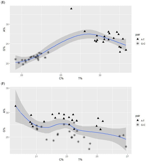 - Forsdyke, D.R. Relative roles of primary sequence and (G+C)% in determining the hierarchy of frequencies of complementary trinucleotide pairs in DNAs of different species. J. Mol. Evol. 1995, 41, 573–581. [Google Scholar] [CrossRef] [PubMed]