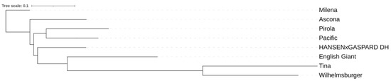 Phylogeny analysis of eight winter type and blackleg resistant B. napus cultivars; Ascona, English Giant, Hansen × Gaspard, Milena, Pacific, Pirola, Tina and Wilhelmsburger.