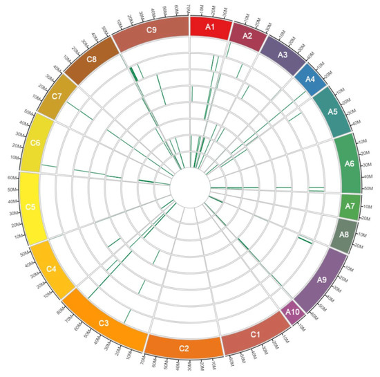 3.2. Distribution along Chromosomes and Sub-Genomes