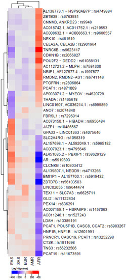 2.2. Comparison of PCa SNPs among Global Populations