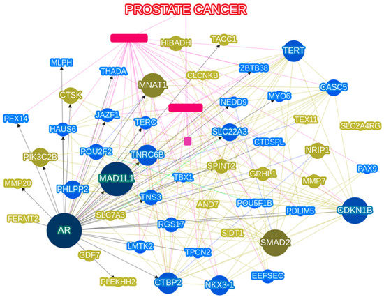 3.4. Network Analysis Using PCa Related Gene Analysis