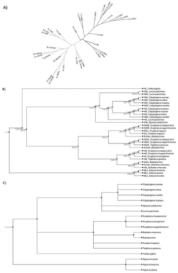 - Felsenstein, J. Inferring Phylogenies, 2nd ed.; Sinauer Associates, Inc.: Sunderland, MA, USA, 2003. [Google Scholar]