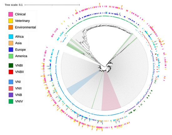 - Litvintseva, A.P.; Kestenbaum, L.; Vilgalys, R.; Mitchell, T.G. Comparative Analysis of Environmental and Clinical Populations of Cryptococcus neoformans. J. Clin. Microbiol. 2005, 43, 556–564. [Google Scholar] [CrossRef][Green Version]
