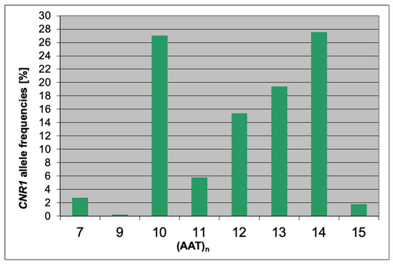 The endocannabinoid system is involved in several physiological and pathological processes; hence, attempts to use it for therapeutic purposes seem justified. Since the effect of this system, and especially the use of drugs affecting this system, may be subject to genetic variations, we chose to study one of the most frequently described variations within CNR1 gene, i.e., a microsatellite polymorphism of the number of three-nucleotide repeats (AAT).