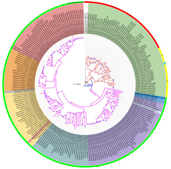 The phylogenetic trees were visualized by iTOL v6 (https://itol.embl.de/, accessed on 31 July 2022) [70].