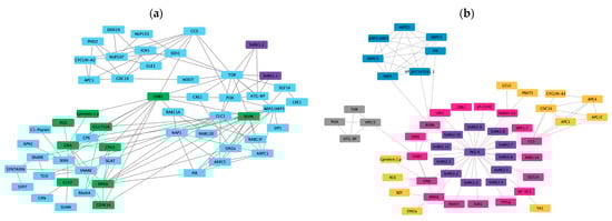 The symbiotic interaction between legumes and rhizobia is unique and involves a set of common symbiotic genes that regulate root nodule symbiosis and mycorrhizal symbiosis. Another 190 genes have been implicated in regulating symbiotic interactions. A total of 200 genes known to be involved in symbiosis were chosen to predict an interaction network with each of the PvSnRK sub-families in the STRING database. Interaction between PvSnRK1 sub-family members and symbiosis-related proteins shows that PvSnRK1.1 and PvSnRK1.2 do not interact directly with any of the symbiosis-related genes. However, they do interact with TOR, PI3K and ATG-RP, which interact with other symbiotic genes represented by 54 nodes and 119 edges. The network mostly involves nucleoporins (NUPs), RAB proteins, auxin-responsive ARP proteins and many proteins involved in vesicle transport (Figure 8a).