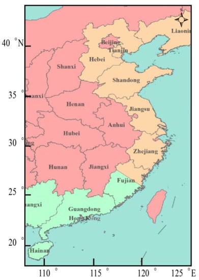 Coastal provinces of China where Ruditapes philippinarum (orange and green) and R. variegatus (only green) are found in natural seawater areas.