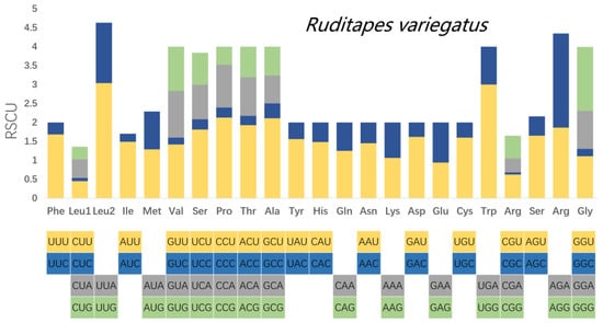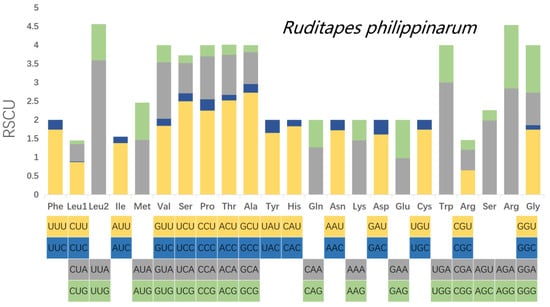 Relative synonymous codon usage (RSCU) in the mitochondrial genome of Ruditapes philippinarum.