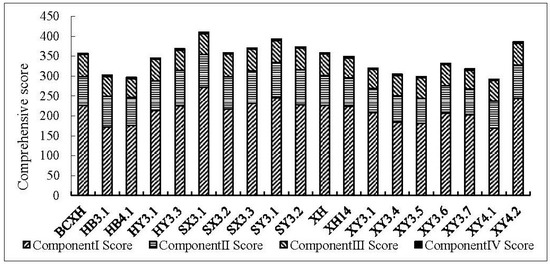 The principal component value and comprehensive score were computed using the following formulas [31]: