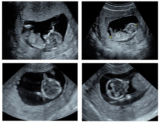 - Rodriguez, N.; Casasbuenas, A.; Andreeva, E.; Odegova, N.; Wong, A.E.; Sepulveda, W. First-Trimester Diagnosis of Agnathia-Otocephaly Complex: A Series of 4 Cases and Review of the Literature. J. Ultrasound. Med. 2019, 38, 805–809. [Google Scholar] [CrossRef] [PubMed]
