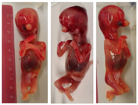 - Menezes, G.A.; Araujo Junior, E.; Lopes, J.; Belmonte, S.; Tonni, G.; Werner, H. Prenatal diagnosis and physical model reconstruction of agnathia-otocephaly with limb deformities (absent ulna, fibula and digits) following maternal exposure to oxymetazoline in the first trimester. J. Obs. Gynaecol. Res. 2016, 42, 1016–1020. [Google Scholar] [CrossRef]