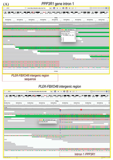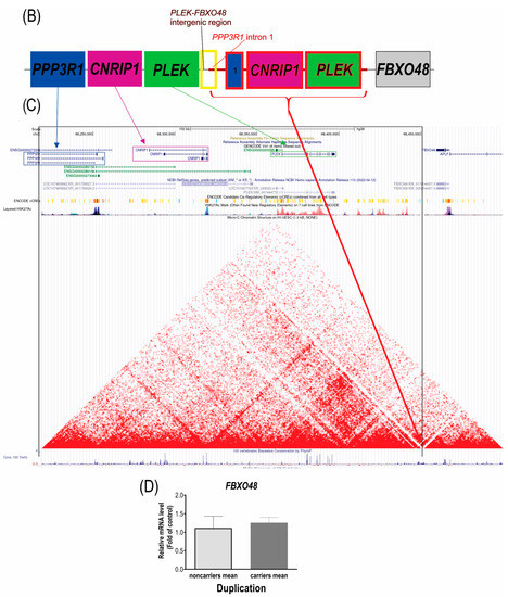 3.1. The Duplication Is in Tandem between the PLEK and FBXO48 Genes
