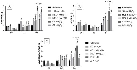 Chicago/Turabian StyleTorres, Flaviene Felix, Victoria Simões Bernardo, Carla Peres de Paula, João Pedro Maia de Oliveira da Silva, Eduardo Alves de Almeida, Anderson Ferreira da Cunha, and Danilo Grünig Humberto da Silva. 2022. "Influence of Melatonin Treatment on Cellular Mechanisms of Redox Adaptation in K562 Erythroleukemic Cells" Genes 13, no. 12: 2337. https://doi.org/10.3390/genes13122337