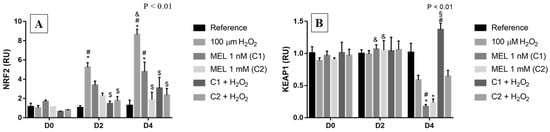 - Vriend, J.; Reiter, R.J. The Keap1-Nrf2-Antioxidant Response Element Pathway: A Review of Its Regulation by Melatonin and the Proteasome. Mol. Cell. Endocrinol. 2015, 401, 213–220. [Google Scholar] [CrossRef]