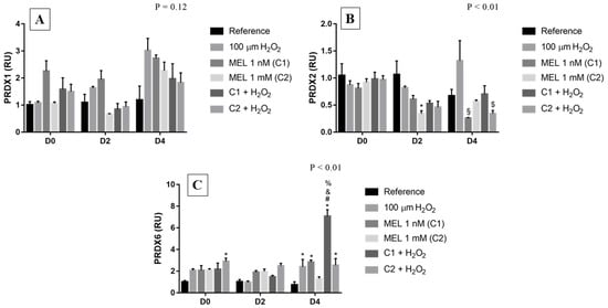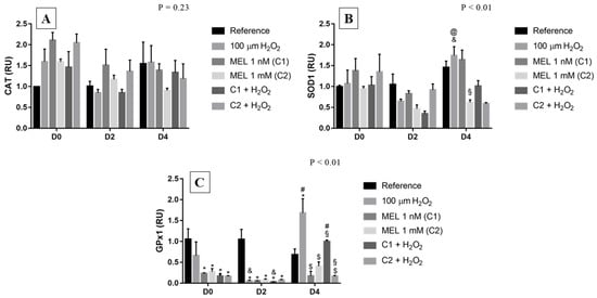 2.4. Administration of Melatonin (Protective Agent) and Hydrogen Peroxide (Stressing Agent)