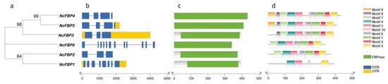 In order to explore the evolutionary relationship among members of NcFBP protein family, a phylogenetic tree was constructed by ML maximum likelihood method. The result is shown in Figure 1a. The NcFBPs can be divided into four subfamilies: NcFBP1 as the member of subfamily I, NcFBP2 as the member of subfamily II, NcFBP6 as the member of subfamily III, NcFBP3, and NcFBP4 and NcFBP5 as the members of subfamily IV.