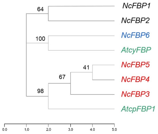 For phylogenetic analyses among the NcFBPs, the full length protein sequences were multiply aligned by the ClustalX2.1 program with default parameters, followed by constructing a phylogenetic tree with the maximum likelihood (ML) method using the MEGA X program [24]. The bootstrap values were calculated with 1000 replications. These alignments among 23 species were used to generate a phylogenetic tree with the neighbor-joining method using the Poisson correction in 1000 bootstrap test replicates [25].