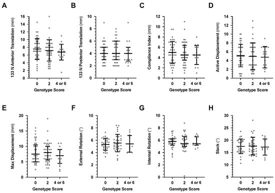 3.2. Association of Collagen Genotypes with Knee Laxity Measurements