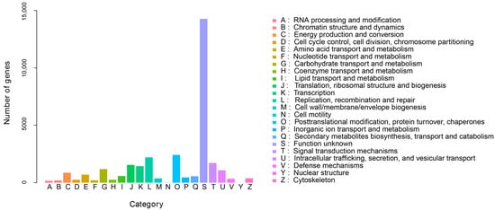 All of the assembled unigenes were aligned against the non-redundant protein database (NR) (https://www.ncbi.nlm.nih.gov/, accessed on 2 October 2021), Gene Ontology (GO) (http://geneontology.org/, accessed on 3 October 2021), Swiss-Prot (https://www.expasy.org/swiss-prot, accessed on 4 October 2021), Kyoto Encyclopedia of Genes and Genomes (KEGG) (www.genome.jp/kegg, accessed on 5 October 2021), and eggNOG (http://eggnog5.embl.de, accessed on 6 October 2021) databases using DIAMOND [19], with a threshold E-value <0.00001.