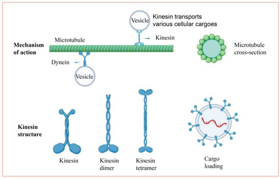- Hirokawa, N.; Noda, Y. Intracellular transport and kinesin superfamily proteins, KIFs: Structure, function, and dynamics. Physiol. Rev. 2008, 88, 1089–1118. [Google Scholar] [CrossRef]