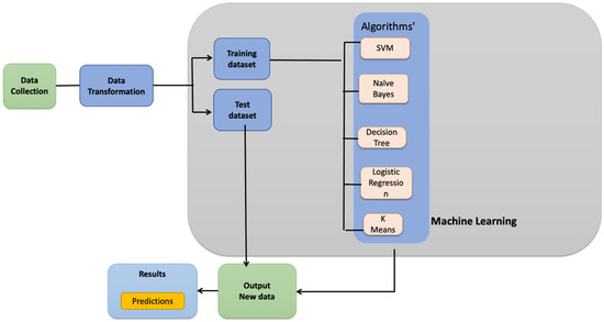 We used six major classifiers to train and test the model: (i) Support Vector Machine, (ii) Naïve Bayes, (iii) Decision trees, (iv) Perceptron, (v) Logistic Regression, and (vi) K Means (unsupervised). We randomly split the dataset to use 80% for training and 20% for testing. We used off-the-shelf algorithms implemented in Scikit-learn for these experiments and used other libraries, such as NumPy, Pandas, and Matplotlib available in Python 3.10.7. While unsupervised algorithms are hard to implement on such data, we used only K Means for a flavor of unsupervised learning. Further analyses with algorithms, such as K Medoids, PCA, etc., are left for future work.