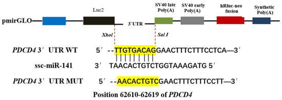 3.4. Analysis of Ssc-miR-141–Binding Site in PDCD4 3′-UTR