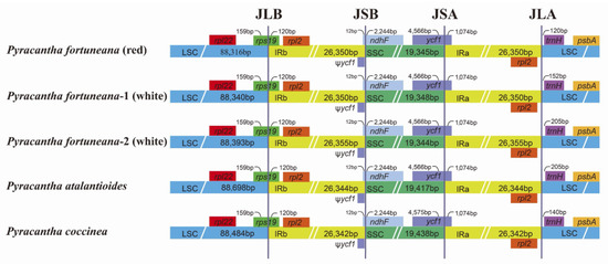 APA StyleDing, S.-X., Li, J.-C., Hu, K., Huang, Z.-J., & Lu, R.-S. (2022). Morphological Characteristics and Comparative Chloroplast Genome Analyses between Red and White Flower Phenotypes of Pyracantha fortuneana (Maxim.) Li (Rosaceae), with Implications for Taxonomy and Phylogeny. Genes, 13(12), 2404. https://doi.org/10.3390/genes13122404