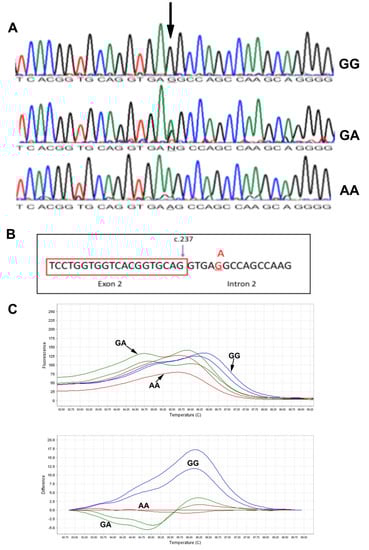 3.3. c.237+5 G>A Analysis with High-Resolution Melting and Determination of Founder Effect