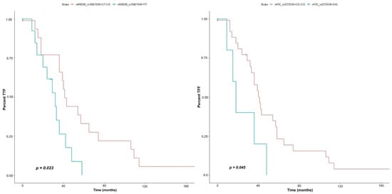 3.2. Time of Treatment Failure (TTF)/Risk Analysis over the Response Time (HR)