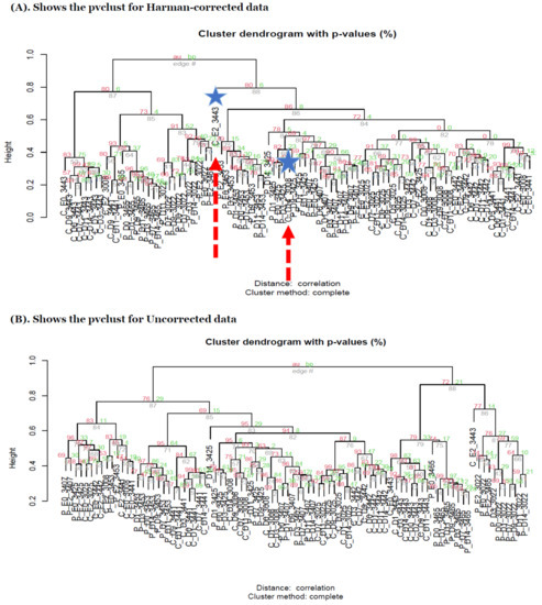 - Suzuki, R.; Shimodaira, H. Pvclust: An R package for assessing the uncertainty in hierarchical clustering. Bioinformatics 2006, 22, 1540–1542. [Google Scholar] [CrossRef]