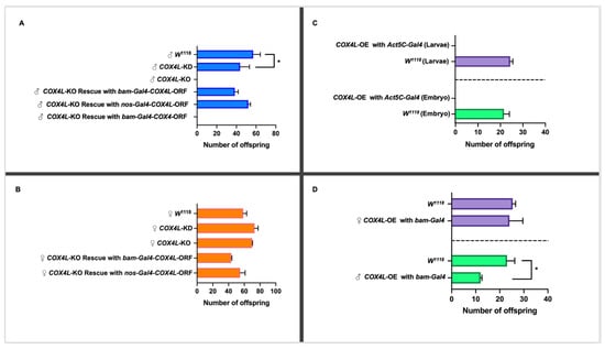 3.7. Overexpression of COX4L in the Soma and Germline