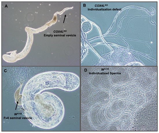 3.4. Male Sterility in COX4L-KO Mutants Is Due to an Individualization Defect