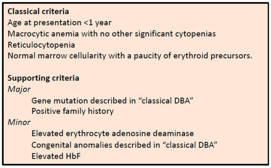Diagnostic and supporting criteria for the diagnosis of DBA, as established by Vlachos et al. [3].